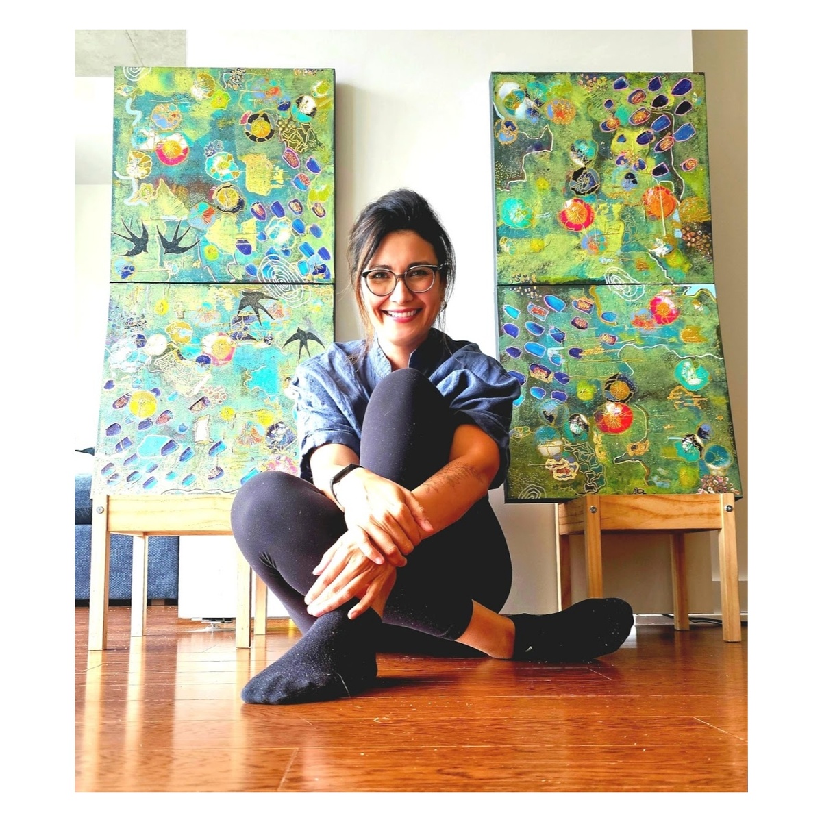 Outside of her studio practice, Nathalie is a devoted mother to her four-year-old son, who keeps her grounded, curious, and laughing. She loves spending time with family & friends, painting whenever she can, traveling, and fully embracing every holiday season. When the day winds down, she can often be found hiding under the blankets during scary movies and happily calling it a night by 8pm.